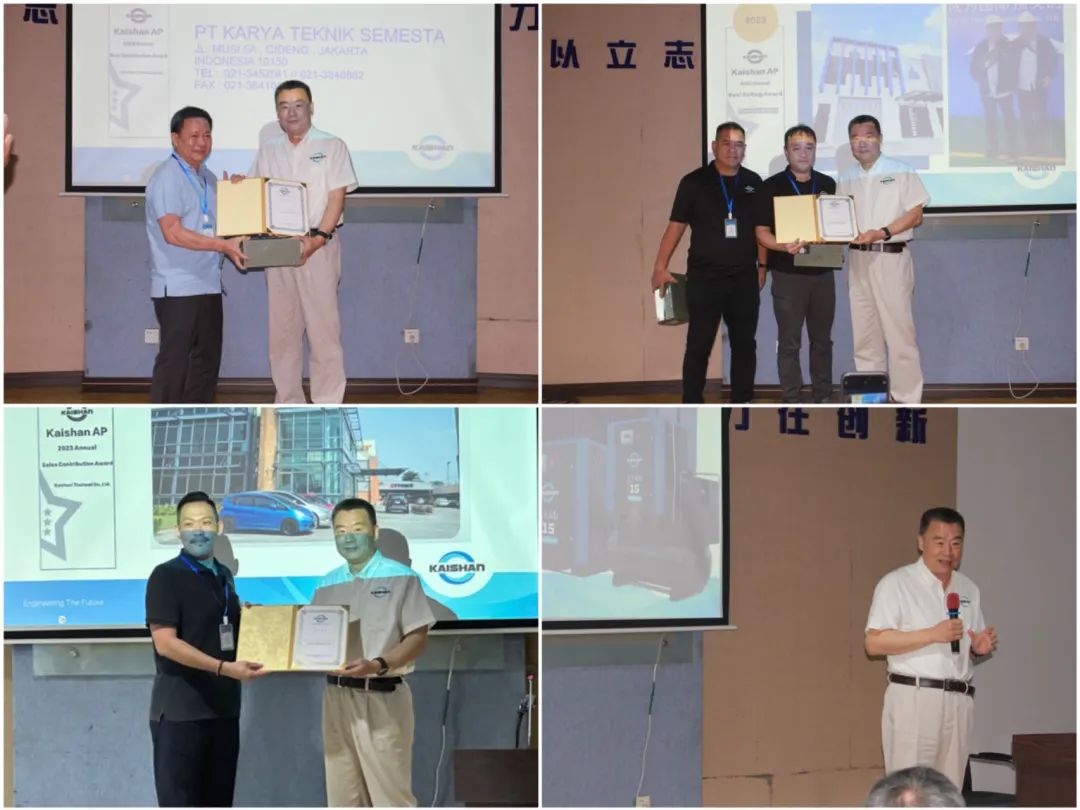 曹克堅(jiān)董事長出席了會(huì)議,他向三家獲得最佳銷售、貢獻(xiàn)獎(jiǎng)的馬來西亞、泰國、印度尼西亞經(jīng)銷商頒發(fā)了獲獎(jiǎng)證書。