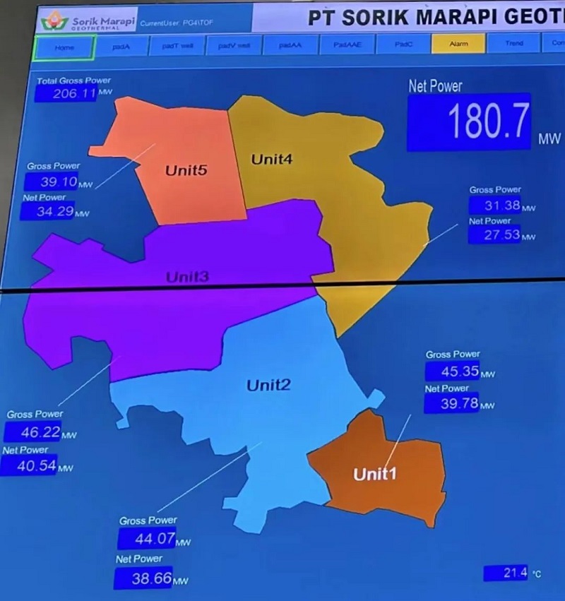 這是重要的里程碑事件,標(biāo)志著SMGP地?zé)犭娬具M(jìn)入到"200兆瓦俱樂部”。在全球地?zé)峤纾l(fā)電功率超過200兆瓦的電站(定義為發(fā)電設(shè)備生產(chǎn)的電力,外售電量還需要扣除電站運行自耗功)寥寥無幾,SMGP地?zé)犭娬具@座采用開山擁有完全自主知識產(chǎn)權(quán)的模塊電站,勢將成為全球地?zé)峤绲摹懊餍恰保彩翘K門答臘最主要的地?zé)犭娬尽?/span>